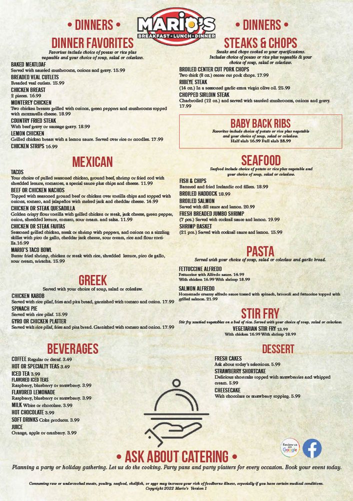 Mario's also offers an inviting happy hour, full bar, and outside dining options, making it perfect for any occasion. The warmth of the staff and the personal touch from owner Mario himself make every visit memorable. Dive into a unique dining experience that is both delicious and welcoming!